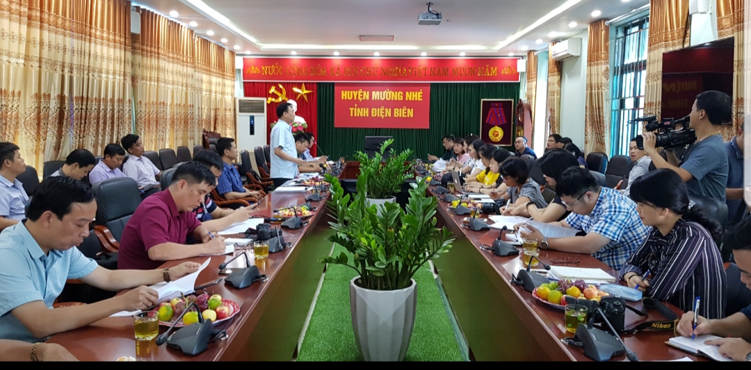 Ein Treffen zwischen Vertretern der Parteileitung des Kreises Muong Nhe und Journalisten. (Foto: Ngoc Anh/ VOV5) |