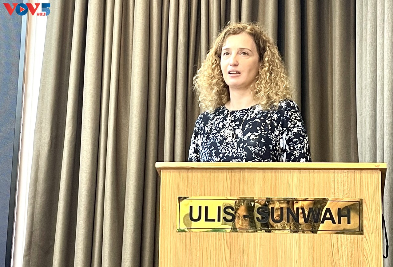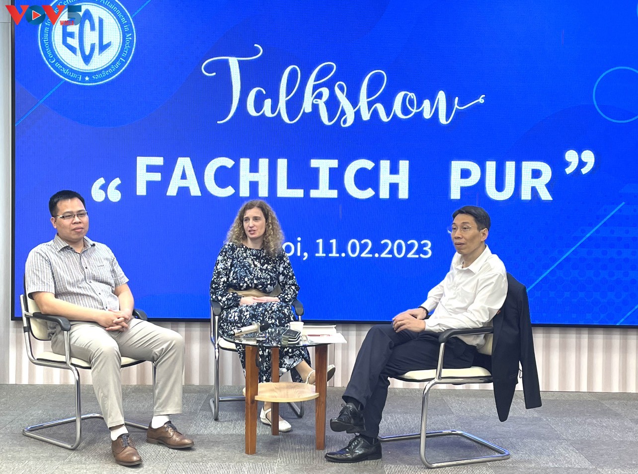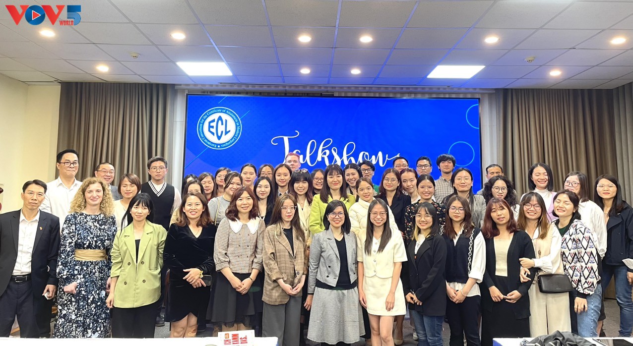 Vor dem Seminar „Fachlich Pur“ über die ECL-Prüfungen in Vietnam hat sich die Halle in der Hanoi-Universität für Fremdsprachen und internationale Studien der vietnamesischen Nationaluniversität (VNU Hanoi-ULIS) schnell mit Gästen gefüllt. Die mehr als 50 Delegierten sind Dozenten und Lehrkräfte für Deutsch als Fremdsprache oder Germanistik. Die Anwesenden wurden von der Leiterin des internationalen ECL-Prüfungszentrums Réka Werner ausführlich über die ECL-Prüfungen informiert.