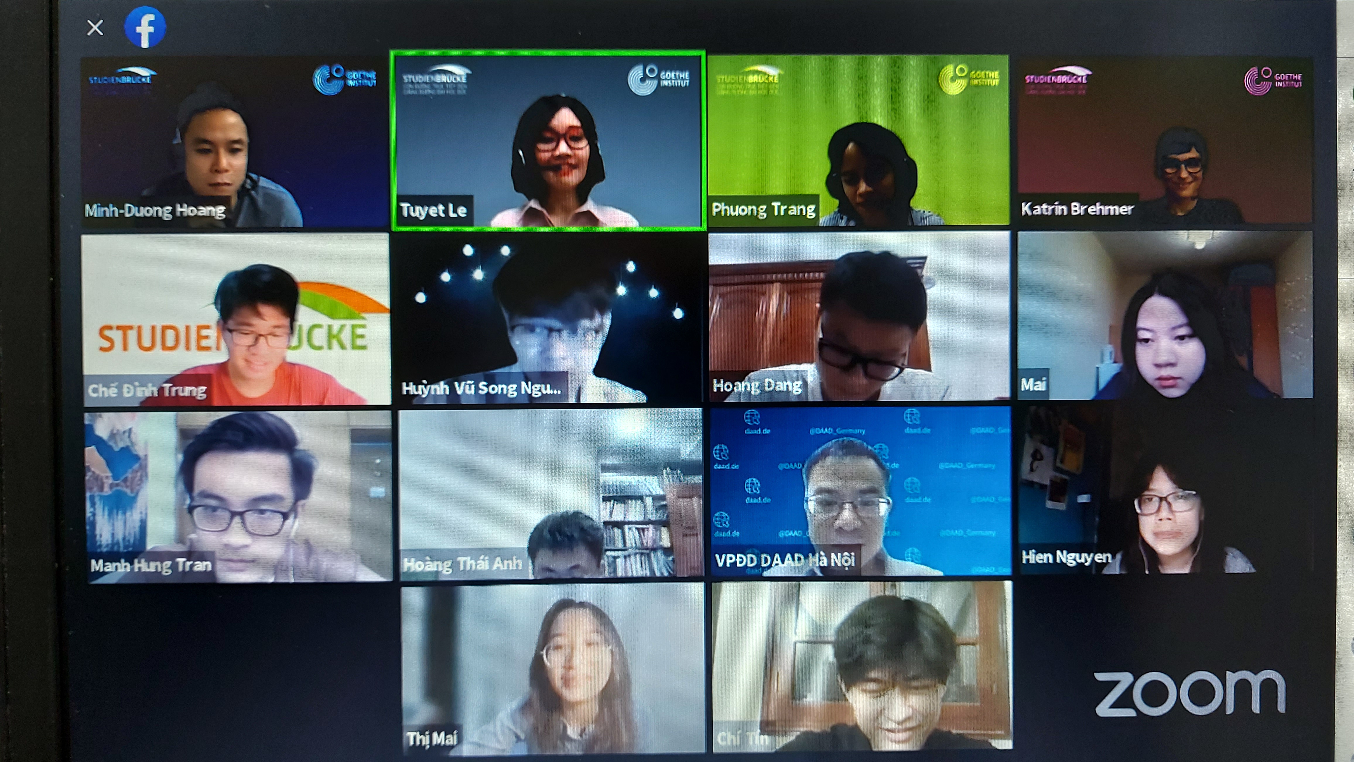 Blick auf eine Online-Konferenz über die Studienbrücke in Vietnam, die vom Goethe-Institut Hanoi organisiert wird. |