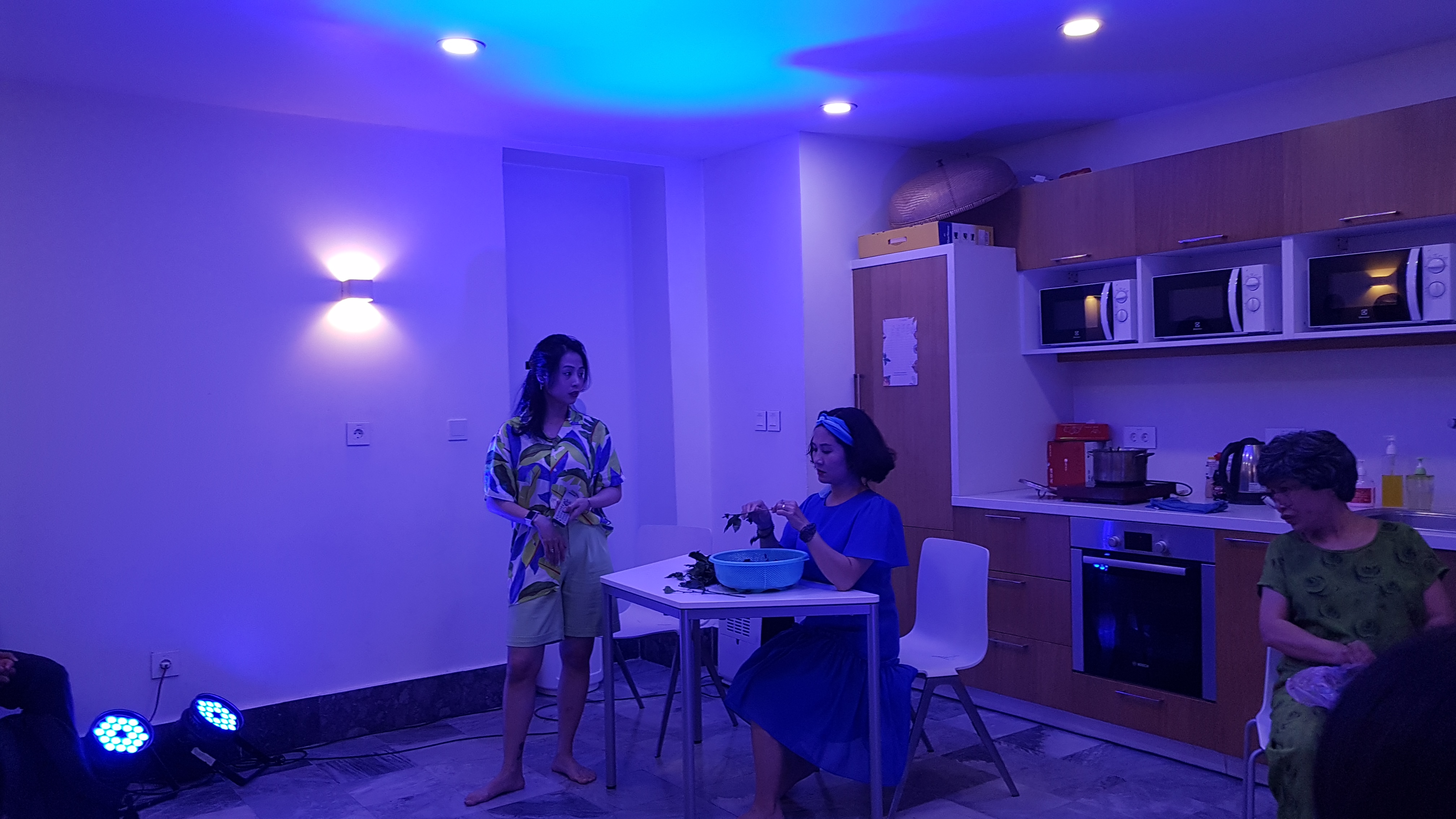 Eine Szene im Minidrama "Blauer Monolog" in der Küche des Goethe Instituts Hanoi. |