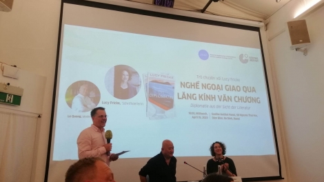 (VOVWORLD) - In der Lösung vieler Fragen wird die Diplomatie immer geschätzt, besonders in der Unruhe in vielen Orten weltweit, wenn alle beteiligten Seiten sich am Verhandlungstisch setzen müssen. Jedoch kann die Diplomatie nicht immer ihre Ziele erreichen und hat ihre eigene Grenze. Damit man die anderen Aspekte der Diplomatie verstehen kann, haben das Goethe Institut Hanoi und der Deutsche Akademische Austauschdienst (DAAD) ein Gespräch zum Thema „Diplomatie aus der Sicht der Literatur“ veranstaltet. Dabei konnte das Publikum in Hanoi die deutsche Schriftstellerin Lucy Fricke und deren Roman „Die Diplomatin“ kennenlernen.