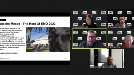 (VOVWORLD) - Die EMO Hannover, die Weltleitmesse der Produktionstechnologien, findet vom 18. bis 23. September 2023 in der deutschen Stadt Hannover statt. Der Veranstalter der EMO Hannover, der Verein Deutscher Werkzeugmaschinenfabriken VDW, wirbt in diesem Jahr mit EMO World Tour 2023 für die Messe. Und kürzlich fand eine Online-Pressekonferenz im Rahmen der EMO World Tour mit drei südostasiatischen Ländern, nämlich Malaysia, Singapur und Vietnam, statt. In Vietnam wurde die Online-Pressekonferenz von der Delegation der Deutschen Wirtschaft in Vietnam (AHK Vietnam) und der Deutschen Messe AG begleitet.