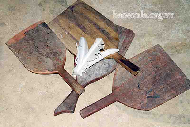Raquetas de madera en el bádminton tradicional de la etnia Mong. (Foto: baosonla.org.vn) |