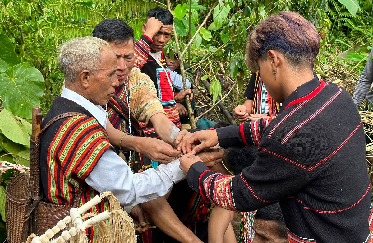 Los Ca Dong atan cada hilo alrededor de la muñeca del patriarca como muestra de la confianza de la comunidad. (Foto: dantocmiennui.vn) |