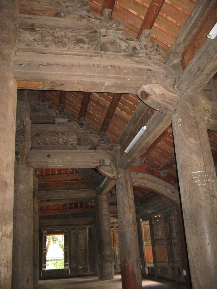 Las casas comunales en Vietnam se dedican a honrar a las Divinidades Tutelares, quienes pueden ser un héroe que defendió la aldea o genios de Río o Montaña que brindan una vida pacífica para los ciudadanos. También es el lugar donde los aldeanos se reúnen en ocasiones particulares. Cada obra se considera como un museo que registra datos sobre el país y el pueblo desde el momento de su edificación y muestra la habilidad de escultores nacionales de entonces. El investigador del antiguo arte de Vietnam, pintor Phan Cam Thuong, dio a conocer: “La escultura para las casas comunales se califican de tipo arte folclórico, forjado por los pueblos, sin carácter religioso ni feudal. Todas las esculturas que encontramos en las casas comunales que se conservan hasta el momento, se dividen en dos tipos: uno de motivos decorativos, con figuras de cosas y animales sagrados, y otro que son en bajorrelieves que reflejan la vida cotidiana de los habitantes durante los siglos XVI, XVII y XVIII, como las escenas de una caza, una jornada en el campo y un juego convencional, entre otros.”