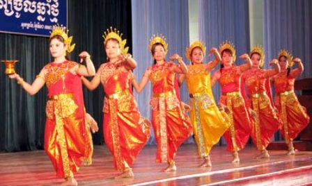 De los diferentes géneros de arte de las antiguas Cortes jemeres, la danza-teatro Ro Bam, también llamada Romrobam, es el que mayor auge artístico ha alcanzado. Los bailarines profesionales exponen diversos movimientos y posturas de las manos, en combinación con la flexibilidad y la habilidad acrobática de todo el cuerpo. Una obra de Ro Bam normalmente presenta dos líneas de personajes: una sin máscaras, como los reyes, príncipes y princesas, y la otra de antagonistas que sí las lleva, como Yeak, el símbolo de lo malvado.