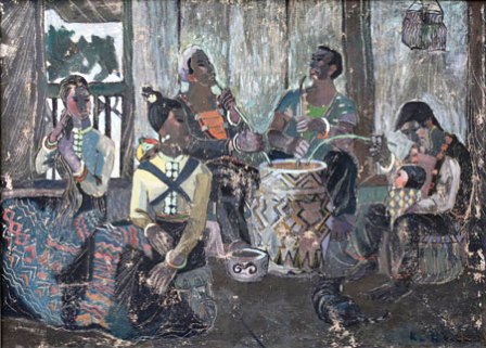 ![]() El cuadro "Ruou can” del pintor Ka Kha Sam