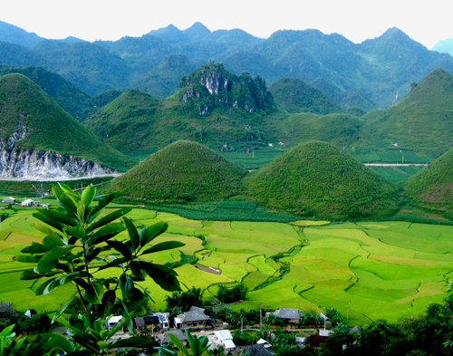 Quan Ba cuenta con muchos destinos excepcionales, como la Puerta del Cielo que conduce a la cima de Dong Van, las paredes que aún quedan en pie del antiguo Palacio de Can Ty, la cueva de Kho My Tung Vai y la montaña de Thach Son Than. De ellos, destaca el Nui Doi que se parece a los senos de una chica joven. Según cuenta la leyenda local, un hada llamada Hoa Dao se enamoró de un hombre Mong por su talento en tocar el “Dan Moi” (arpa de boca vietnamita). Se casaron y tuvieron un bebé. Sin embargo, cuando el Emperador de Jade descubrió que Hoa Dao había llegado a la tierra, se enfureció y la obligó a regresar al cielo. Antes de abandonar a su familia, dejó sus pechos allí para alimentar a su bebé. Más tarde, estos se convirtieron en dos montañas que nutren también a los árboles que crecen en ellas y también en un paisaje hermoso que inspira a muchos compositores, poetas y fotógrafos. Uno de ellos, Nguyen Tuan Khoa, radicado en Hanói, compartió: “Los turistas cuando pasan por Quan Ba tienen que parar para contemplar el Nui Doi, una verdadera y única obra maestra de la naturaleza. He estado aquí varias veces pero no deja de impresionarme. Estas montañas tienen una hermosura diversa, dependiendo de la época del año.”