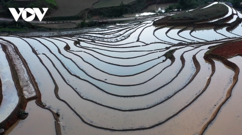 (VOVWORLD) - Cada mayo y junio, los campos de arroz en terrazas en el distrito de Mu Cang Chai, de la provincia septentrional de Yen Bai, se parecen a una acuarela. Es cuando los cultivadores locales, de la etnia Mong, conducen agua a sus parcelas, convirtiéndolas en unos espejos gigantescos que reflejan nubes, montes y una exuberante vegetación alrededor. De esta manera, la temporada de crecidas es una de las estaciones más bonitas del año en Mu Cang Chai y atrae un gran número de turistas.