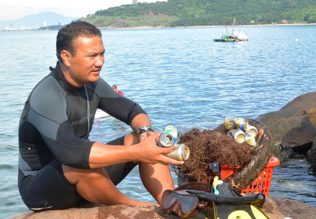 El activista trabaja incluso en el fondo del mar. Perfectamente capaz de ello, pues es entrenador de deportes acuáticos, Trung bucea al menos una hora por semana para recoger basura en las cercanías de las costas y salvar los bancos de coral dañados por los residuos. Allí ha encontrado botellas de plástico que llevan más de 20 años dañando al ecosistema.