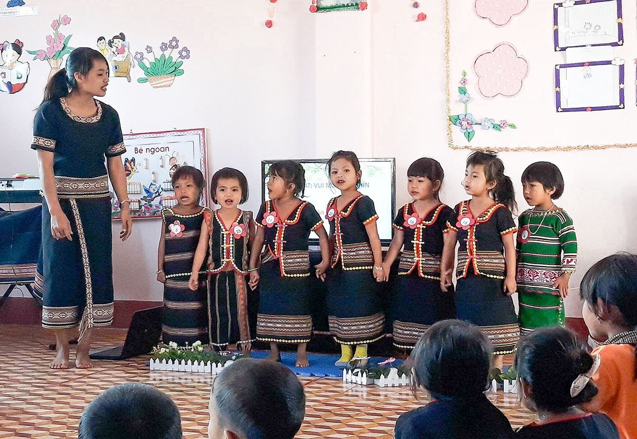 Antes de 2018 el jardín de infantes tenía menos de diez alumnos; hoy, los treinta y ocho niños de 3 a 5 años de la aldea están inscriptos en la escuela. Todos son del grupo étnico Jrai, pero ahora hablan vietnamita con fluidez. A su vez, fueron introducidos a varios instrumentos musicales tradicionales y a la vestimenta de su grupo étnico. Sin Ksor H’Nhiem, estos cambios no se habrían producido, dijo Do Thi Nga, rectora de la guardería infantil “30 de abril”.