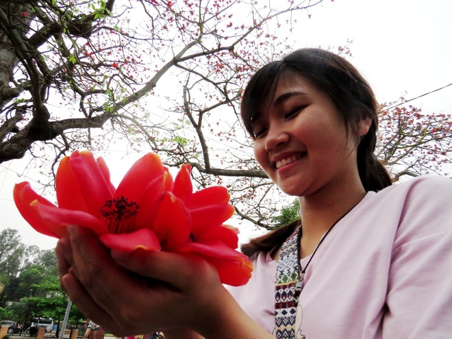 Linh, una estudiante de la Universidad de Medicina de Hanoi, expresa su fascinación por la hermosura de las flores princesas de marzo