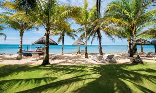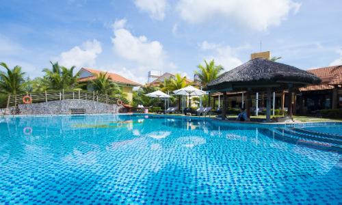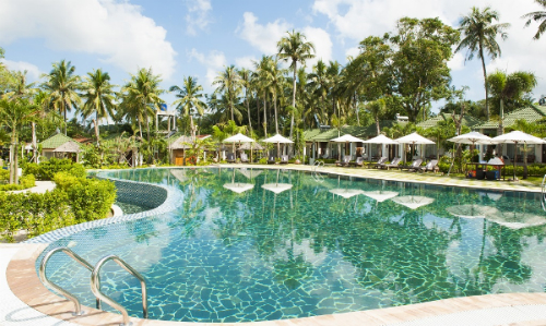 Este complejo turístico de cuatro estrellas fue construido en una extensión de cuatro hectáreas en la playa Bai Truong, una de las más hermosas de Phu Quoc.