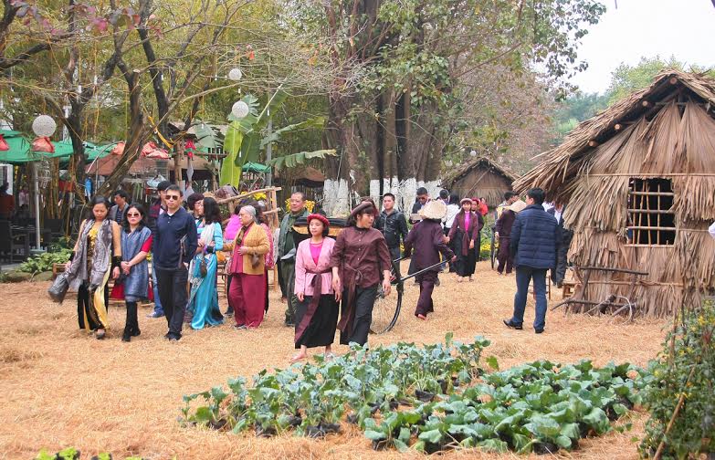 ![]() El punto más destacado de este Festival son escenarios que reaviven espacios culturales de las zonas campestres de Vietnam. En el corazón de la urbanización, al lado de las calles decoradas con flores multicolores, se reproducen espacios muy típicos de las aldeas vietnamitas, con estanque de flores de loto con rústicos instrumentos para capturar peces, canal con puentes precarios, caminos rurales con carruajes de remolque y tenderetes de té…