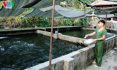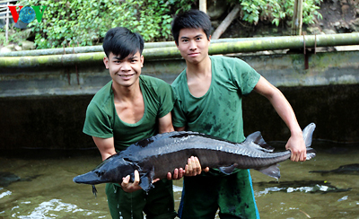(VOVworld) - La provincia montañosa de Lai Chau, al norte de Vietnam cuenta con desventajas geográficas y los soldados del puesto fronterizo Pa Vay Su deben enfrentarse a numerosas dificultades. Pero hasta ahora han superado los retos gracias a iniciativas como la cría de salmones y esturiones, originarios de Europa del Norte. El coronel Duong Trong Dong, comandante del cuartel general de la provincia, tuvo esta idea después de sus visitas al puesto fronterizo de Vang Ma Chai, en el arroyo Then Seo Ho. Este proyecto recibió el apoyo de la administración provincial y se puso en marcha en septiembre de 2008 con el objetivo de ayudar a las organizaciones financieras y los hogares de la localidad en el desarrollo económico. La primera etapa del plan reportó a los soldados un ingreso superior a 100 millones de dongs (algo más de 5 mil dólares estadounidenses) por 3 toneladas de pescados.