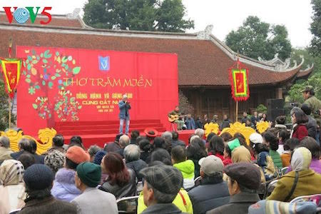 (VOVworld) - “Rimar con el desarrollo creativo del país” fue el tema del XV Día de la Poesía de Vietnam, celebrado este 11 de febrero en el Templo de la Literatura Van Mieu-Quoc Tu Giam, en Hanoi.