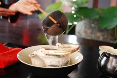 ![]() Cuando el agua está en la temperatura indicada, la echan al té depositado en la tetera y la tapan inmediatamente