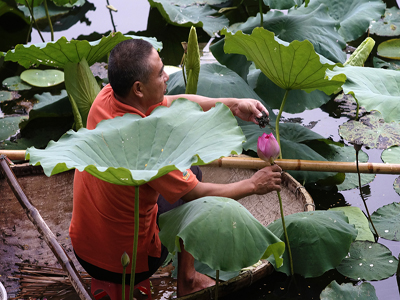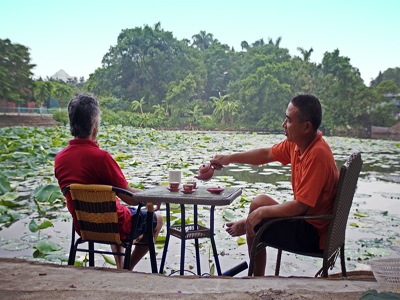 ![]() Nada es más agradable que degustar el sabor fresco y fragante de tazas del té a orilla de una laguna de flor de loto en florecimiento