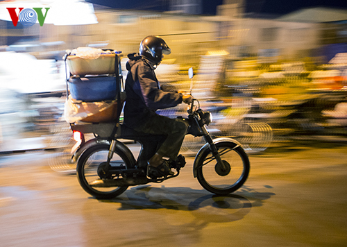 Al amanecer, el puerto pesquero Quang se pone bullicioso con motocicletas que