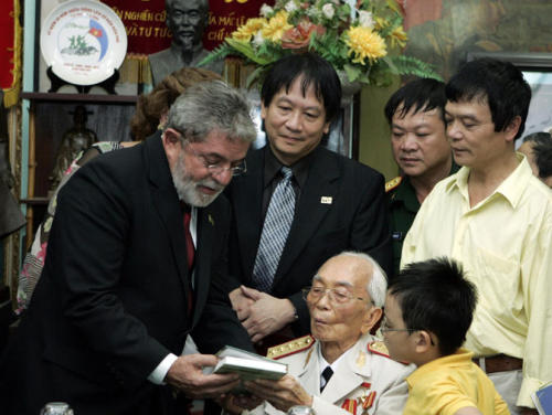 El general Vo Nguyen Giap obsequia sus memorias al presidente de Brasil,