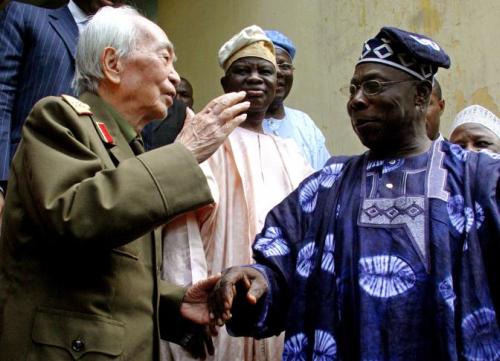 El general Vo Nguyen Giap recibe al presidente de Nigeria,