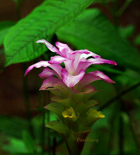 Flores de jengibre ocultas (Curcuma petiolata) tienen el color similar al de pétalos de loto