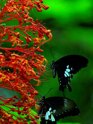 Flores del geranio de la jungla (Ixora coccinea) resaltan en inmensos bosques