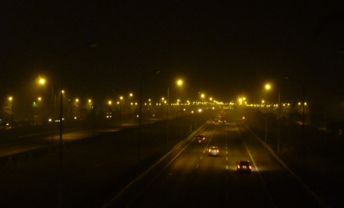 ![]() El puente de Nhat Tan visto desde lejos en la noche |