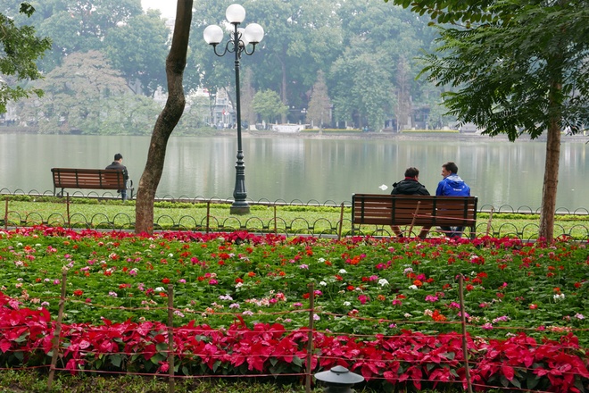 Los jardines que rodean el lago Hoan Kiem... |