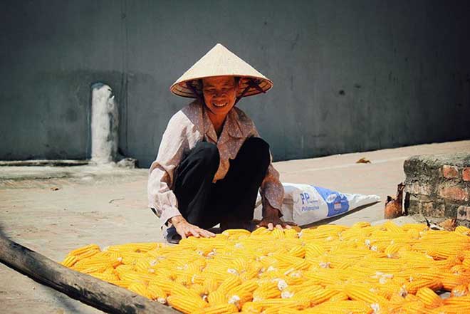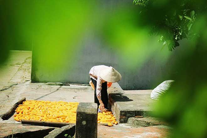 ![]() Maíz y arroz están secados bajo el sol