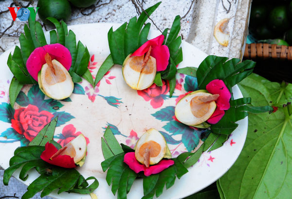 ![]() Areca y betel trabajados primorosamente en tributo a los antepasados |