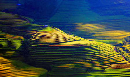 Terrazas de arroz aparecen ante los ojos de los excursionistas como un cuadro de colores muy vivos