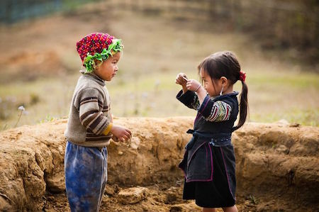 Niños étnicos en la zona montañosa del Norte de Vietnam