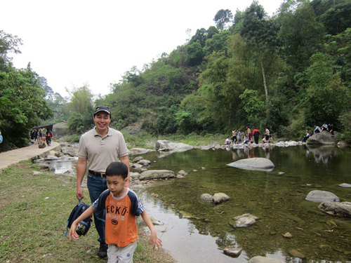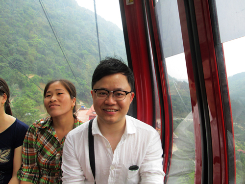 La Cascada Bạc (Plata) vista desde el teleférico. Es un salto de agua con una altura |