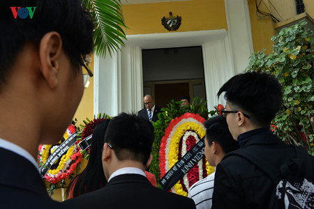 En la mañana del domingo, numerosos hanoyenses continuaron acudiendo a la sede de la embajada de Cuba para dar el último adiós a la gran personalidad de la humanidad.Estos actos de homenaje se suman a muchas muestras de pesar por el