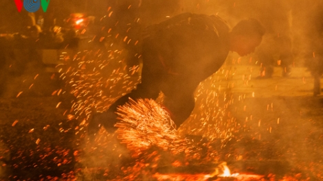 (VOVworld) - En saludo a la asamblea 132 de la Unión Interparlamentaria en Hanoi, pobladores de la minoría etnica de Pa Then se encontraban en la capital para dar la bienvenida a los participantes e introducirles la danza del fuego muy peculiar de su pueblo.