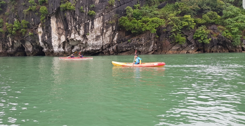 Turistas disfrutan de sus paseos en kayak. (Foto: Ngoc Anh/VOV5) |