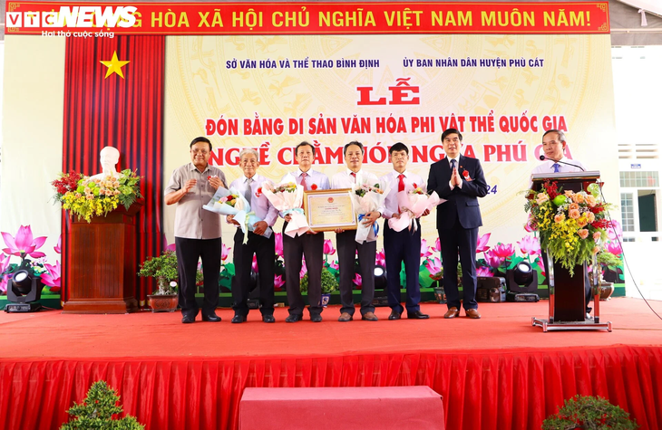 El acto de recibimiento del certificado que declara la confección del sombrero cónico en la aldea de Phu Gia, provincia de Binh Dinh, como Patrimonio Cultural Inmaterial Nacional. (Foto: VTC)