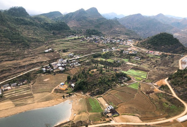 Mirando hacia abajo desde la torre de la bandera de Lung Cu, el poblado de Lo Lo Chai se destaca en medio de una meseta rocosa, con antiguas casas de tierra y adobe. (Foto: Vnexpress)