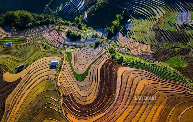 Desde arriba, puedes ver el agua caer en los campos de arroz en terrazas. (Foto: A Lu/VOV) |