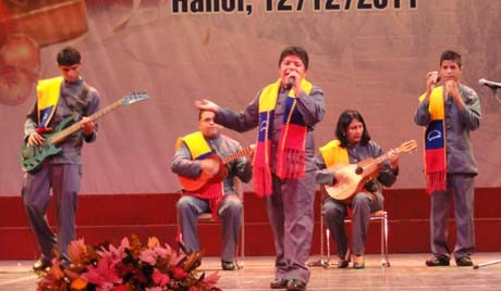 La banda “Alma Venezolana” interpreta el tema “Gran Maestro Ho”en el Teatro de la Ópera de Hanói, en 2011. (Foto: VOV) |