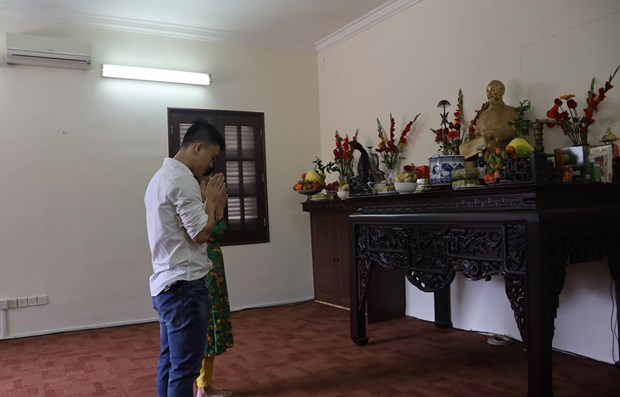 Compatriotas en Malasia ofrecen inciensos ante el altar de veneración al presidente Ho Chi Minh en la Embajada de Vietnam en Kuala Lumpur. (Foto: VNA) |