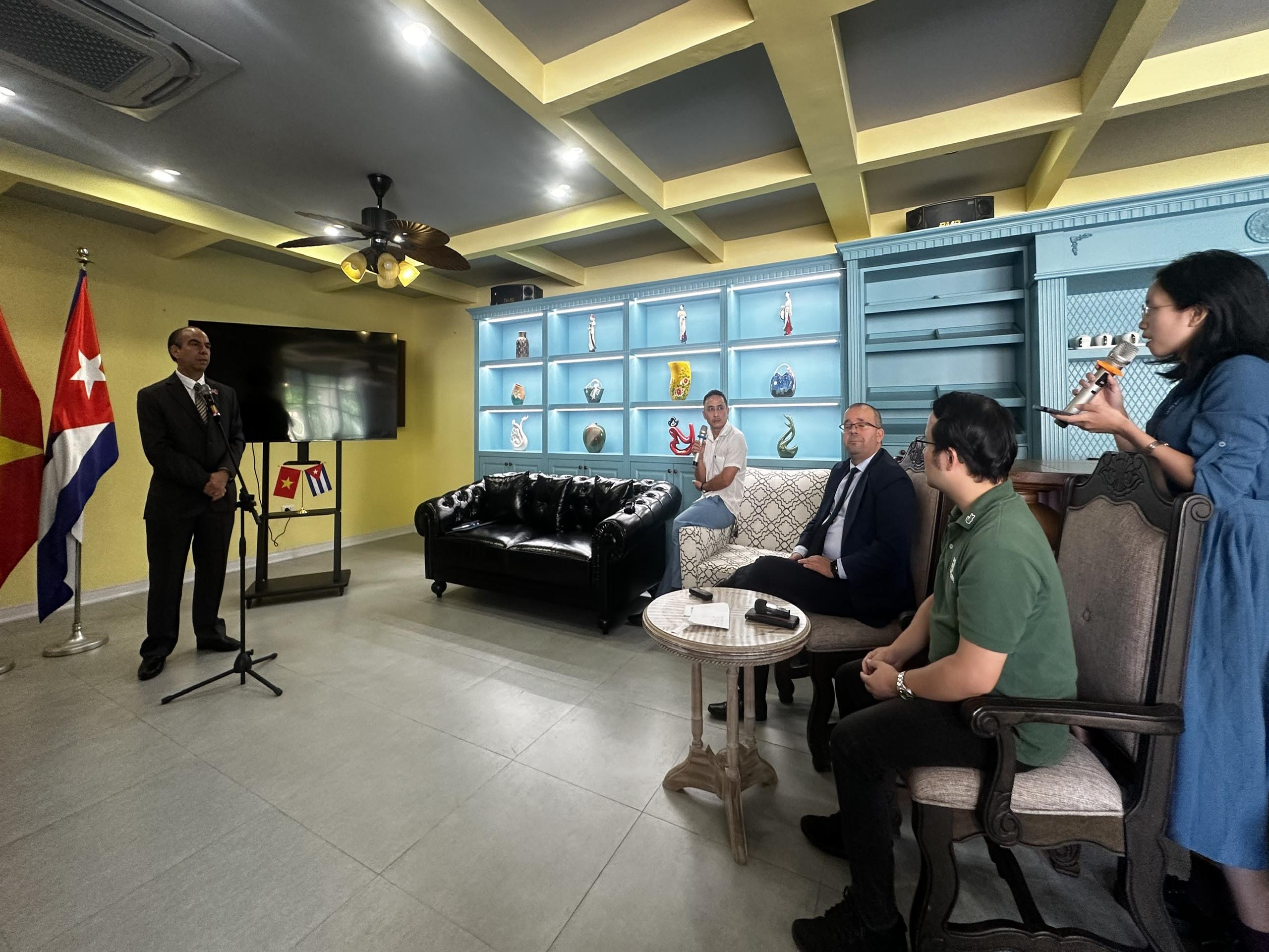 Periodistas preguntan al embajador cubano en Vietnam, Rogelio Polanco Fuentes, durante la rueda de prensa. (Foto: Embajada de Cuba en Vietnam)