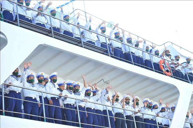 Marineros se despiden a los compatriotas antes de navegar al archipiélago de Truong Sa. (Foto: VNA)