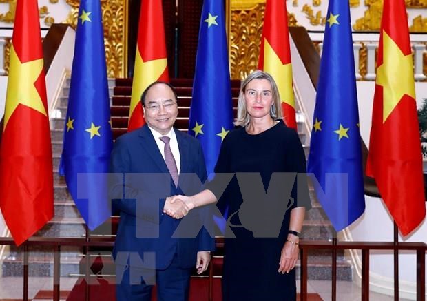 El primer ministro de Vietnam, Nguyen Xuan Phuc y la vicepresidenta de la Comisión Europea, Federica Mogherini (Foto:VNA)