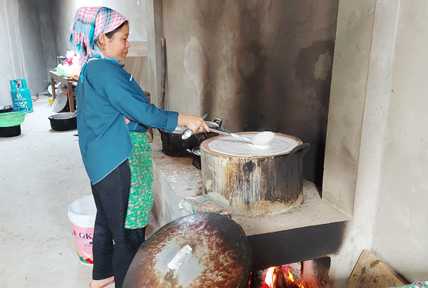 Además de la técnica de hacer casas de adobe, la etnia Nung en Nan San, de la provincia de Lao Cai, mantiene una profesión tradicional de hacer fideos de arroz y vender sopa de los mismos (phở) en las sesiones de mercado. Para tener un buen cuenco de “phở”, primero los cocineros deben elegir un buen tipo de arroz de montaña que es duro y específico para hacer fideos. Otro proceso muy importante es mezclar agua de harina de arroz cocida con agua de harina de arroz cruda, con la proporción adecuada, y luego enjuagar con una bandeja similar a la de la gente de la etnia mayoritaria Kinh. Después de enjuagar, se lo coloca sobre la mesa o en un pote durante unos minutos para que los fideos de arroz se encojan, luego se usa un cuchillo para cortarlos en trozos pequeños. Aquellos a los que les gusta comer rollos de fideos, simplemente los dejan como están, los enrollan y están listos. La sopa de fideos de arroz del grupo étnico Nung en la comuna de Nan San se elabora totalmente a mano, sin utilizar productos químicos, por lo que es limpia e higiénica.