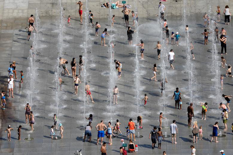 El parque Andre Citroen en París estaba lleno de personas con el deseo de poder aliviar el sofocante calor (Foto: Reuters)