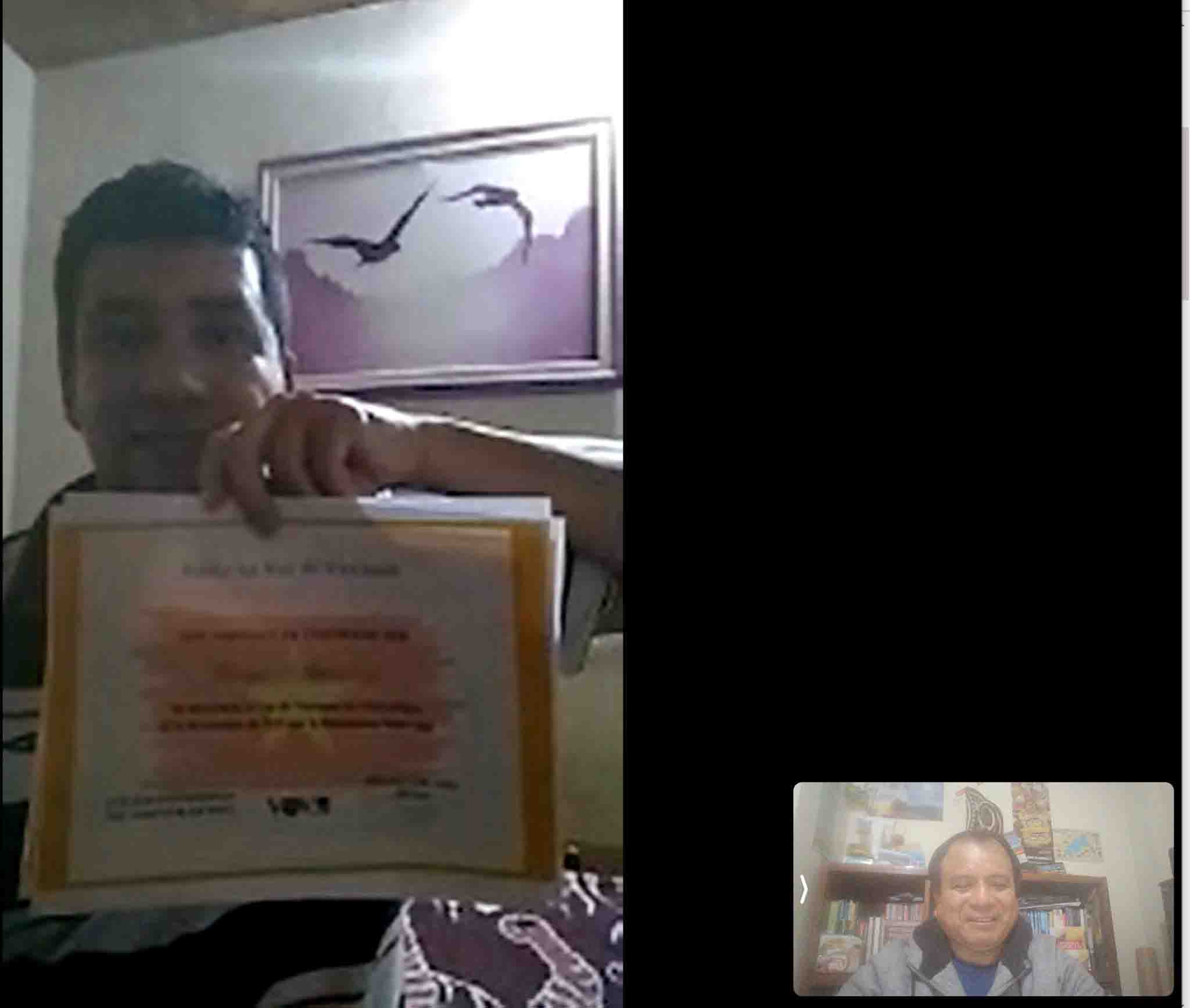 Diego Echeverri (i) en la entrevista concedida a Johnny Antonio Ramírez López, administrador de la página de fans “Amigos VOV DX”. (Foto: Amigos VOV DX) |