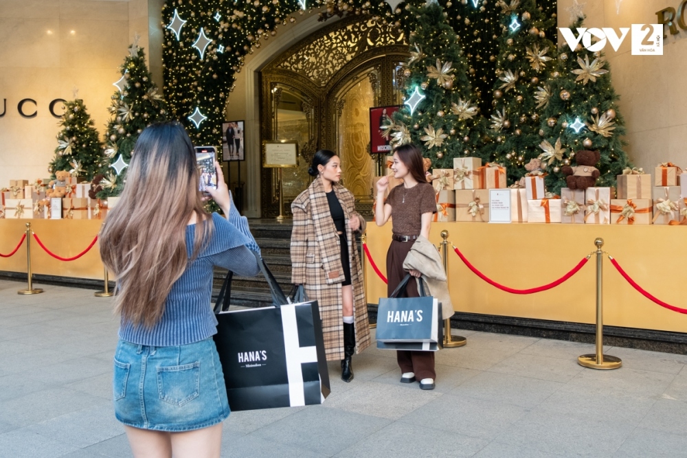 El ambiente de las navidades reina en una calle céntrica de Hanói. |