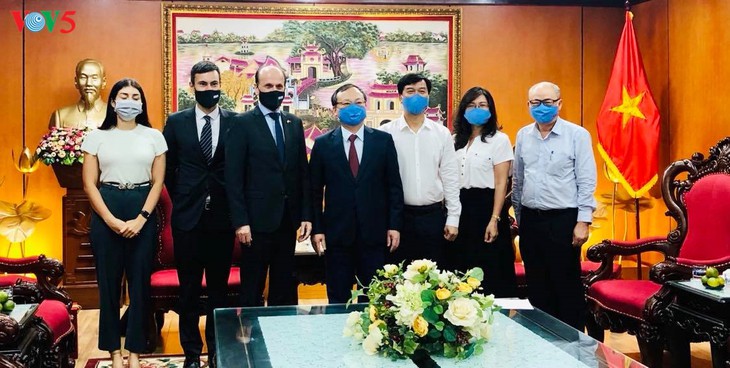 Ana: Con respecto a este último punto, esta semana, el director general de la Voz de Vietnam, Do Tien Sy, recibió al embajador argentino en Hanói, Luis Pablo María Beltramino. El diplomático invitó a la VOV a fortalecer la cooperación profesional con las estaciones de radio y televisión argentinas, especialmente en materia del intercambio de programas que contribuyan a acercar a las dos naciones. El mismo día, Do Tien Sy también se reunió con la embajadora de Noruega en Vietnam, Grete Lochen. La diplomática noruega espera recibir el apoyo de la VOV para divulgar información respecto a la conferencia sobre la economía oceánica sostenible y la adaptación al cambio climático que se realizará a finales del presente año, para contribuir a impulsar las buenas relaciones entre Vietnam y Noruega en el futuro.